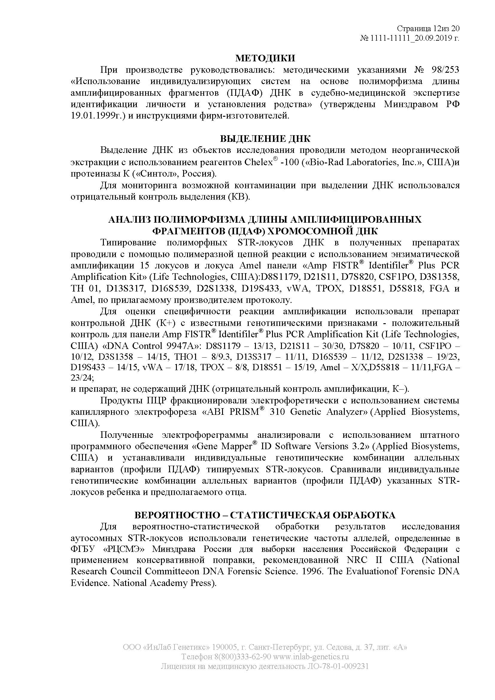 Мы проводим судебно-генетическую экспертизу на отцовство в строгом соответствии с законодательством РФ и соблюдением всех процессуальных нормативов. В результате экспертизы будет подготовлено исчерпывающее экспертное заключение. Это многостраничный прошитый документ, содержащий всю необходимую для суда информацию, который заверяется печатью лаборатории и подписью эксперта-генетика.