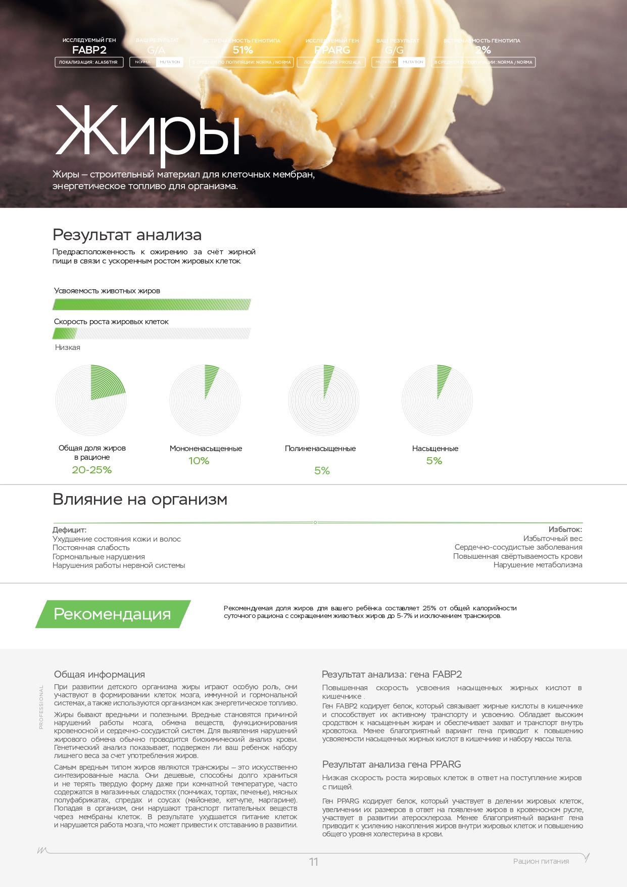 Помните, что помимо физических нагрузок, большую роль играет питание. Вы также можете пройти ДНК-тест на диету, который покажет, каких веществ не хватает в организме, какие организм усваивает лучше, а какие хуже и многое другое.